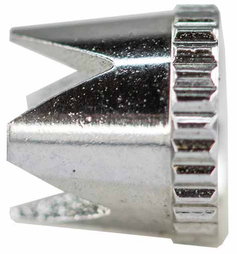 Mit dieser Kronenkappe kann die Luftverwirbelung, welche bei einer normalen Nadelschutzkappe entstehen kann, vermieden werden. Es ist eine detailgenauere Arbeit möglich, da man mit der Airbrush dichter an das Objekt gehen kann.