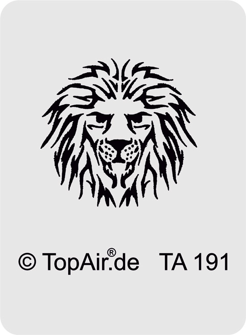 TopAir Schablone aus Kunststoff, 0,12mm dünn- zum hundertfachen Einsatz - TA-191- Löwenkopf, Motivgröße: 70 x 65mm, TopAir®-Laserschnitt, Made by Geckler ©