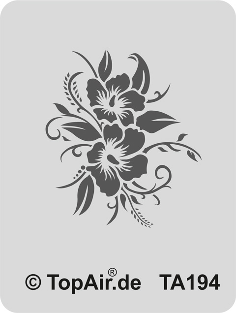 TopAir Schablone aus Kunststoff, 0,12mm dünn- zum hundertfachen Einsatz - TA-194 Blüte Motivgröße: 60 x58 mm TopAir®-Laserschnitt, Made by Geckler ©