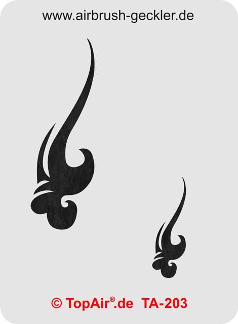 TopAir Schablone aus Kunststoff, 0,12mm dünn- zum hundertfachen Einsatz - TA-203 Motivgröße: 81 x 32 mm TopAir®-Laserschnitt, Made by Geckler ©