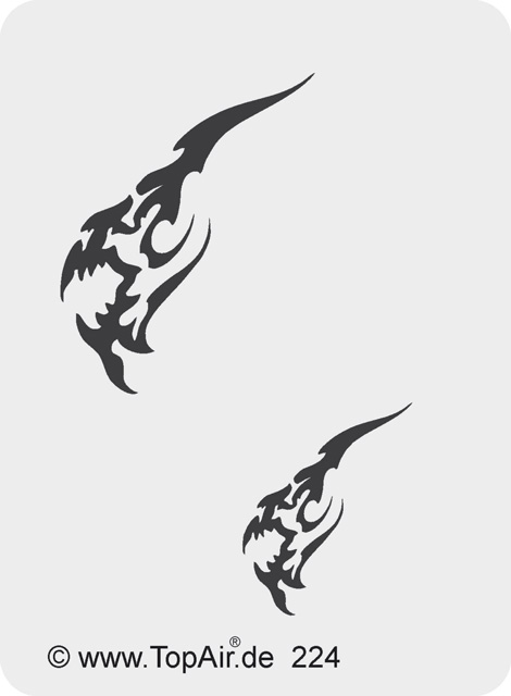 TopAir Schablone aus Kunststoff, 0,12mm dünn- zum hundertfachen Einsatz - TA-224 Die Schablone enthält je 1 Motiv in den Größen 6 x 4,5cm und 4x3cm TopAir®-Laserschnitt, Made by Geckler ©