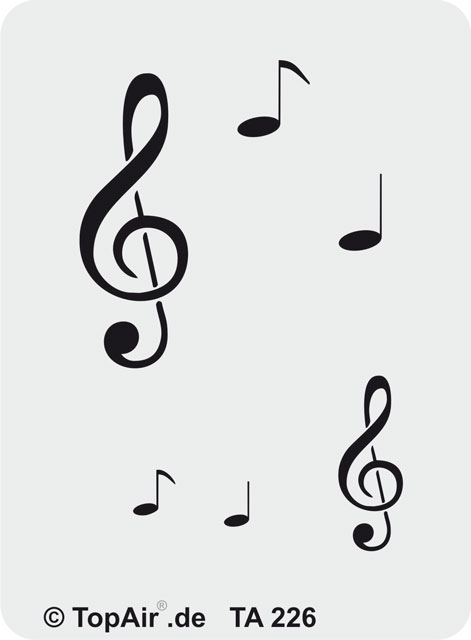 TopAir Schablone aus Kunststoff, 0,12mm dünn- zum hundertfachen Einsatz - TA-226 Die Schablone enthält Notenschlüssel in verschiedenen Größen, TopAir®-Laserschnitt, Made by Geckler ©