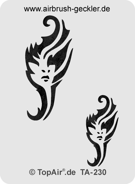 TopAir Schablone aus Kunststoff, 0,12mm dünn- zum hundertfachen Einsatz - TA-230 Motivgrößen: 75 x 34 mm und 51 x 24 mm TopAir®-Laserschnitt, Made by Geckler ©