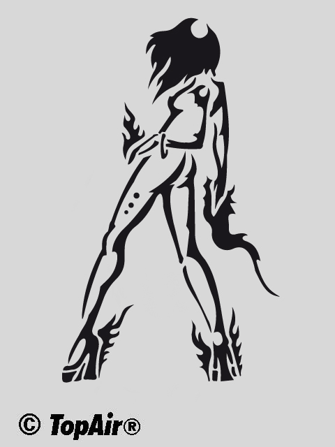TopAir Airbrush Schablone aus Kunststoff, 0,12mm dünn- zum hundertfachen Einsatz - TA-259 Hot Lady Motivgröße 85 x 52mm TopAir®-Laserschnitt, Made by Geckler ©