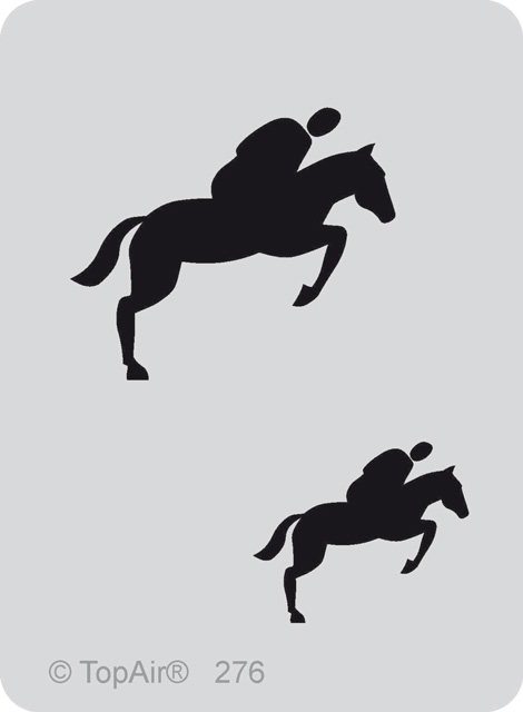 TopAir Schablone aus Kunststoff, 0,12 mm dünn- zum hundertfachen Einsatz - TA-276 - Pferd mit Reiter Motiv in 2 Größen Motivgröße: 59 x 50mm 35 x 30 mm TopAir®-Laserschnitt, Made by Geckler ©