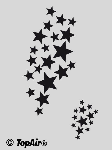 TopAir Schablone aus Kunststoff, 0,12mm dünn- zum hundertfachen Einsatz Motivgrößen: 35 x 73 mm und 18 x 27 mm TopAir®-Laserschnitt, Made by Geckler ©