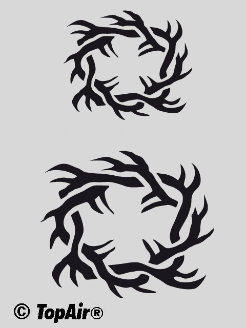 TopAir Schablone aus Kunststoff, 0,12 mm dünn- zum hundertfachen Einsatz - TA-303 Auf der Schablone sind 2 Motivgrößen Motivgröße: 60 x 60 mm u. 40 x 40 mm TopAir®-Laserschnitt, Made by Geckler ©