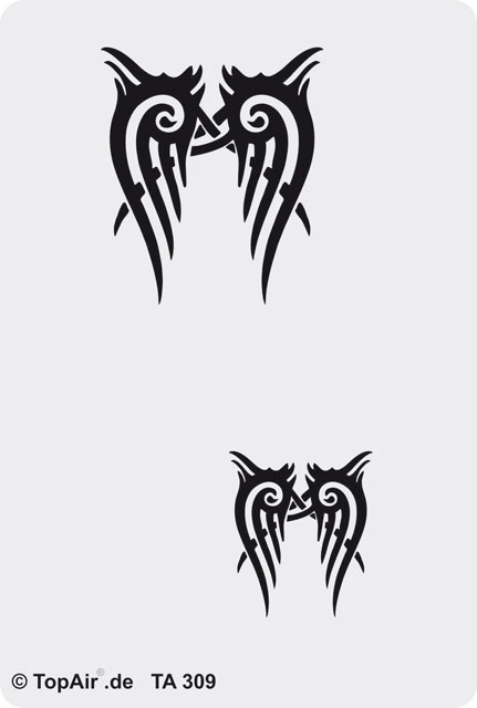 TopAir® Schablone aus Kunststoff, 0,12mm dünn- zum hundertfachen Einsatz - TA-309 Motivgrößen: 61 x 70 mm und 41 x 47 mm TopAir®-Laserschnitt, Made by Geckler ©