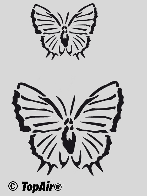 TopAir Schablone ca. 14 x 21,5 cm aus Kunststoff TA-322 Schmetterling. Motivgrößen: 60 x 50 mm und 36 x 30 mm, TopAir®-Laserschnitt, Made by Geckler ©