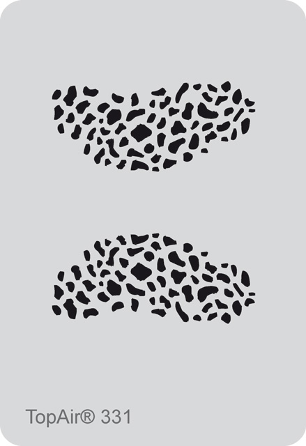 TopAir Schablone aus Kunststoff, 0,12mm dünn- zum hundertfachen Einsatz - TA-331 Mit dieser Schablone gestalten Sie z.B. ein Gesicht Motivgröße: 87 x 40 mm ( jeweils rechts und links ) TopAir®-Laserschnitt, Made by Geckler ©