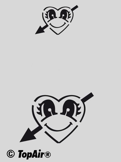 TopAir Schablone aus Kunststoff, 0,12mm dünn- zum hundertfachen Einsatz - TA-352 Auf der Schablone sind 2 Motivgrößen Motivgröße:60 x 41 mm u. 45 x 24 mm TopAir®-Laserschnitt, Made by Geckler ©