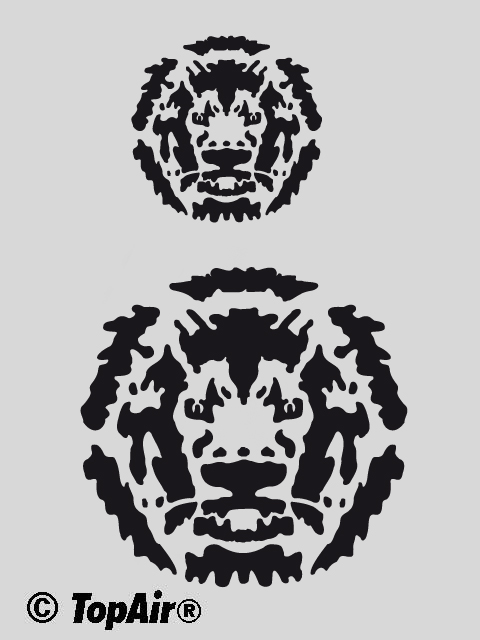 TopAir Schablone aus Kunststoff, 0,12mm dünn- zum hundertfachen Einsatz - TA-359 Auf der Schablone sind 2 Motivgrößen Motivgröße:61 x 60 mm u. 36 x 35 mm TopAir®-Laserschnitt, Made by Geckler ©