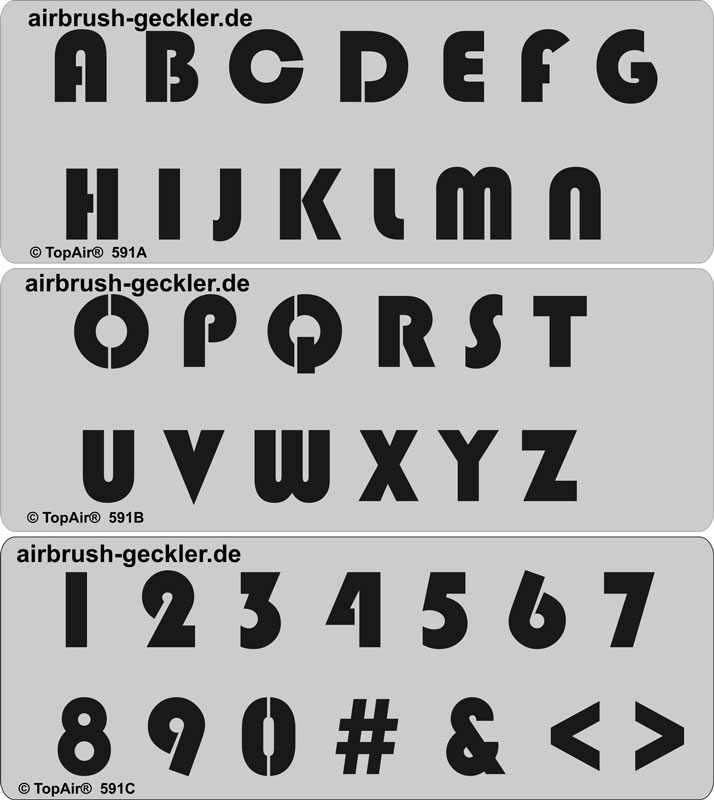 Schablone TA-591-Schrift, aus dünnem, strapazierfähigem Kunststoff    © TopAir