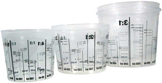 Farbmischbecher klar mit Einteilung von Mischverhältnissen, 0,750 ltr Je nach Mischungsverhältnis 1:1; 2:1; 3:1; 4:1; 5:1
