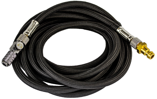 Gewebeschlauch Schwarz, 3,0 Meter mit Stecknippel 5,0 mm und Minischnellkupplung mit Luftregulierung