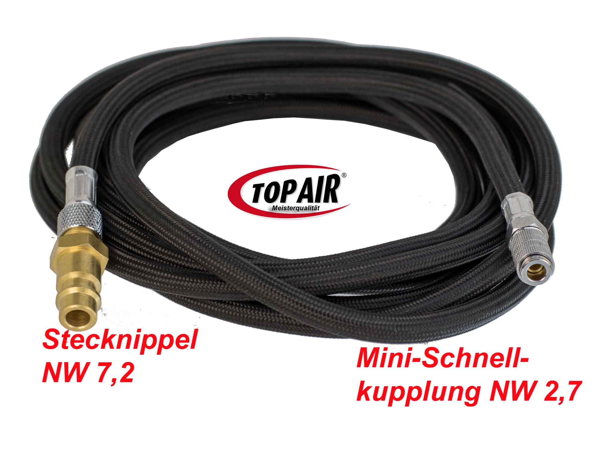 Luftschlauch mit Gewebe Schwarz ummantelt, 1 Seite Stecknippel 7,2 mm