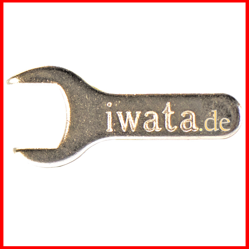 Iwata Pistolenschlüssel für die Eclipse-Serie.Mit diesem passgenauen Schlüssel kann der Düsenkopf bei der Eclipse leicht aus- und eingeschraubt werden.