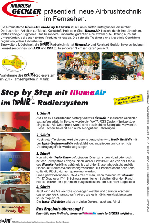 EraserGel zur Radiertechnik von IllumaAir auf glatten Untergründen. Auch geeignet zur gründlichen Reinigung von Airbrushpistolen mit hoher Farblösekraft.
