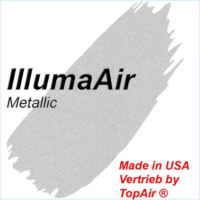 Airbrushfarbe- Metallic-Zusatz auf Acrylbasis, wasserverdünnbar: Anwendungsinfo: 4 Teile IM 400 Metallic, 4 Teile ITR-100 farblos und 2 Teile von IllumaAir Transparent (Farbton nach Wunsch), gemischt, ergibt edle Metallic-Farbtöne.