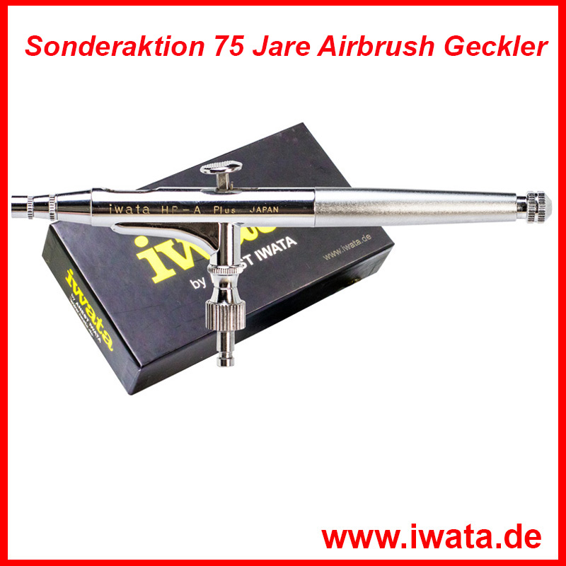Iwata Airbrush-Pistole HP-A-Plus, 0,20 mm Düse-/Nadelkombination mit Teflon-Dichtsatz, 0,9 ml Farbmulde, Handgriff mit Farbmengenregulierung. Diese Airbrush hat ein 1/8" Anschlußgewinde, aber auch zusätzlich einen Stecknippel zum bequemen Anschluß an Mini-Schnellkupplungen. Verkauf nur solange der Vorrat dieser Sonderaktion reicht.