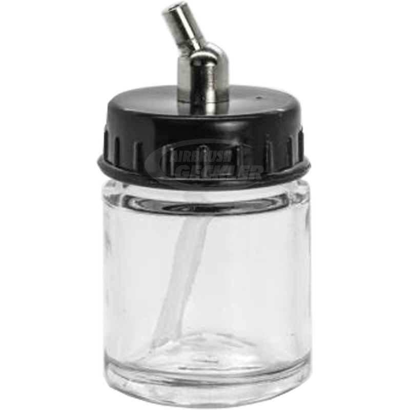 Kunststoff-Leerflasche 30 ml, lösemittelbeständig mit Adapter zum Anstecken an Saugbecherpistolen, passend für TopAir, GECKLER, IWATA, BADGER, THAYER & CHANDLER.