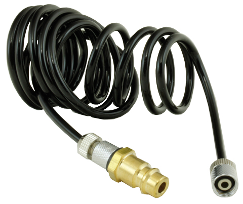 PVC-Schlauch, gerade, schwarz, mit Stecknippel 7,2 mm, passend für Bau-/Industriekompressoren, andere Seite 1/8" Innengewinde, passend für Airbrushes mit 1/8" Gewinde, 1,5 mtr.
