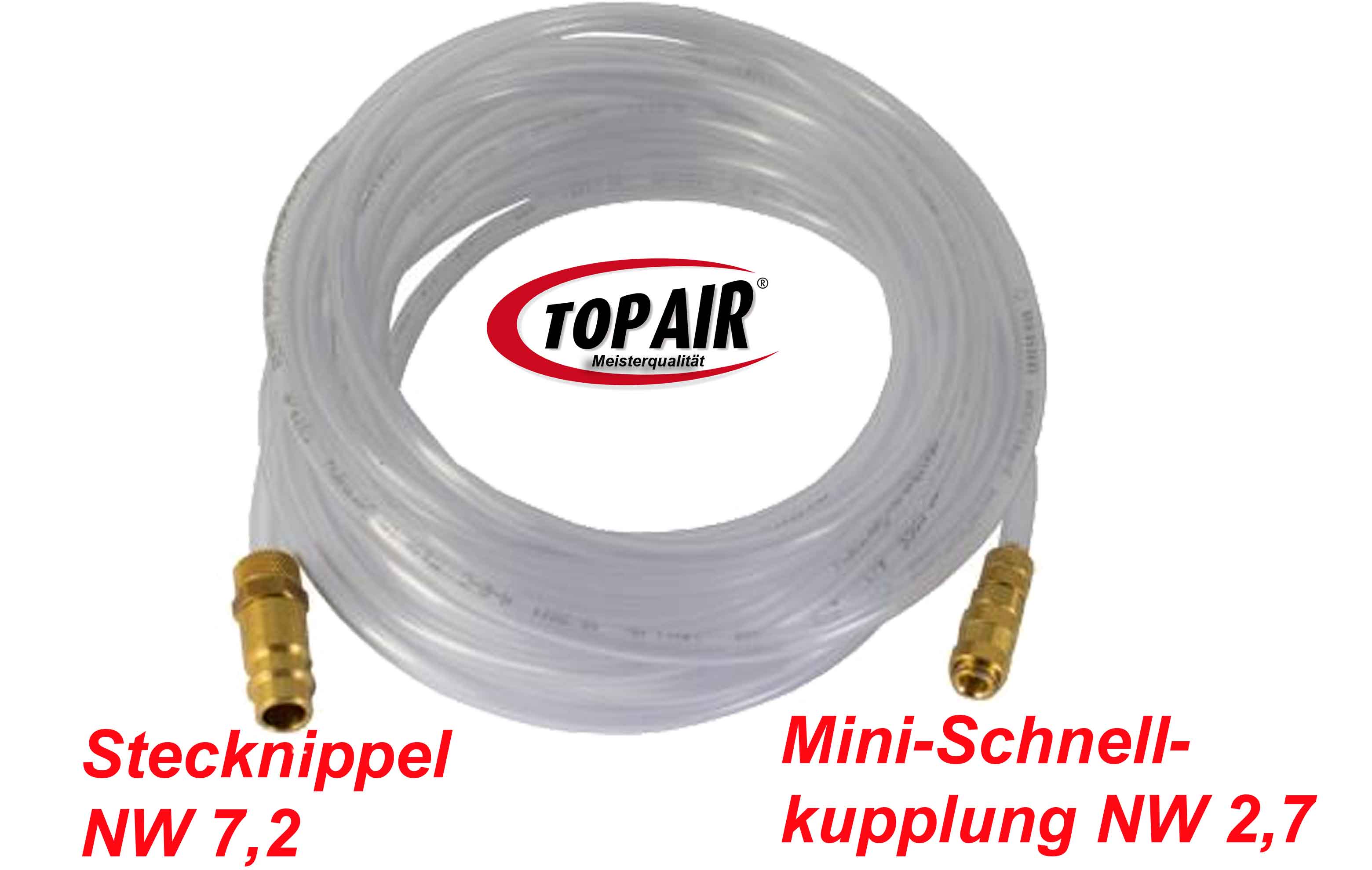 PVC-Schlauch klar mit MiniSchnellkupplung und Stecknippel 7,2 mm für Baukompressor