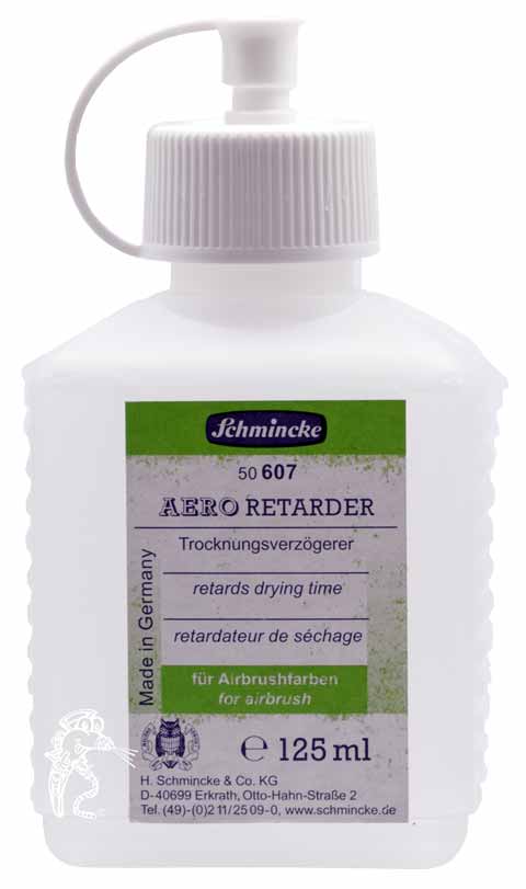 Schmincke Retarder für AeroColor-Farben 125 ml. Mit einer Zugabe von max. 1:1 wird die Trocknung von Schmincke Airbrushfarbe verzögert. Auch die Anhaftung an der Nadel der Airbrush wird reduziert.