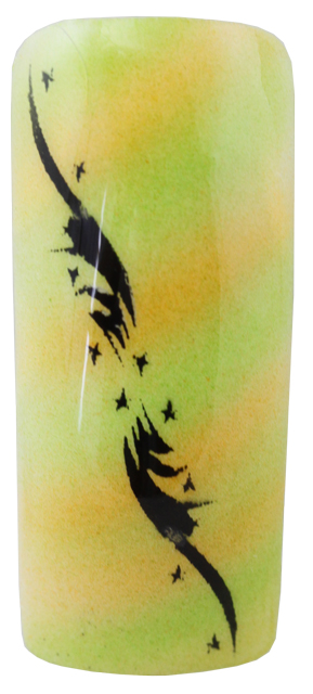 Design aufkleben, mit der Airbrush Farbe aufsprühen und