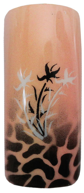 Design aufkleben, mit der Airbrush Farbe aufsprühen und