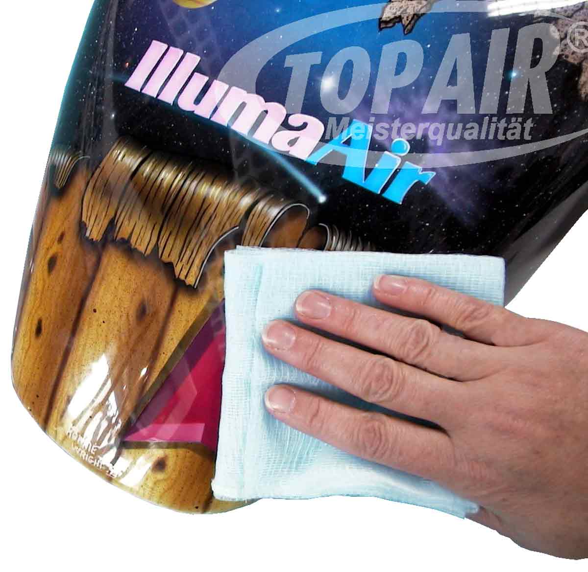 Kennen Sie das Problem? Die Fläche ist superfein angeschliffen und nach der Airbrush-/Lackierarbeiten sind Staubeinschlüsse zu sehen. Dies kann vermieden werden. Mit dem Staubbindetuch die Fläche nach dem Anschleifen abwischen und alle Staubpartikel werden an den Haftflächen des Staubbindetuches festgehalten. Eine erstklassige Oberfläche ist Ihnen mit wenig Aufwand sicher.
