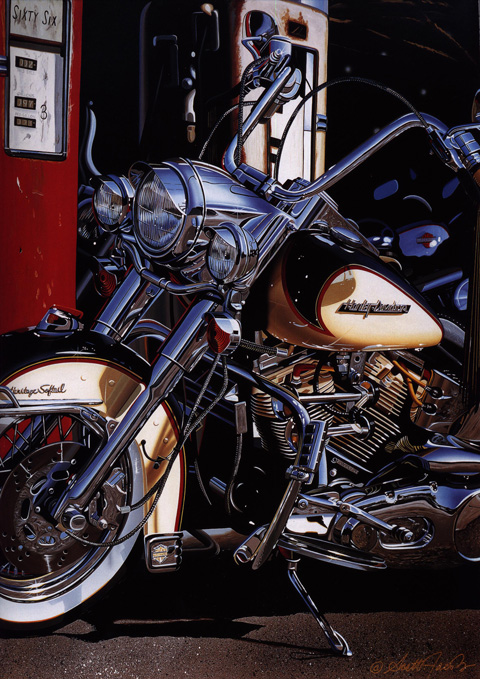 Scott ist einer der begabtesten Harley-Davidson Künstler der Welt. Seine Harleys glänzen, strahlen und spiegeln, als seien sie bestgepflegte edle Harleys.