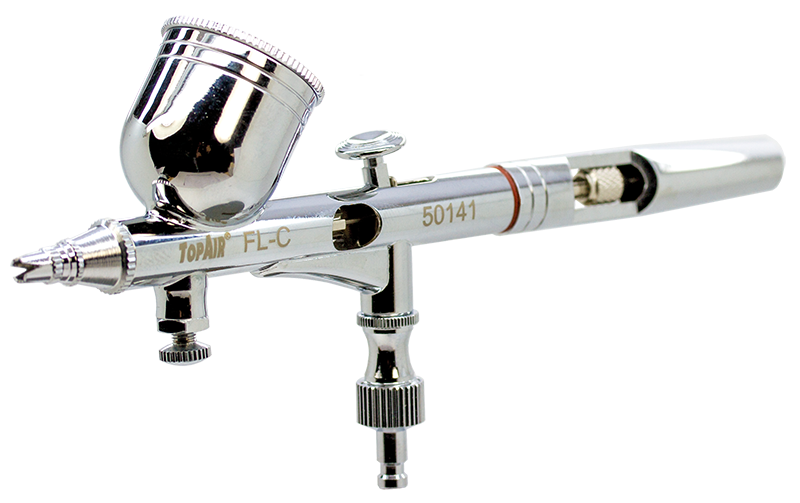 TopAir®-Metallic-Airbrushfarben können mit dieser Airbrush verarbeitet werden. Bei Metallics anderer Hersteller ist ein Eigenversuch notwendig.